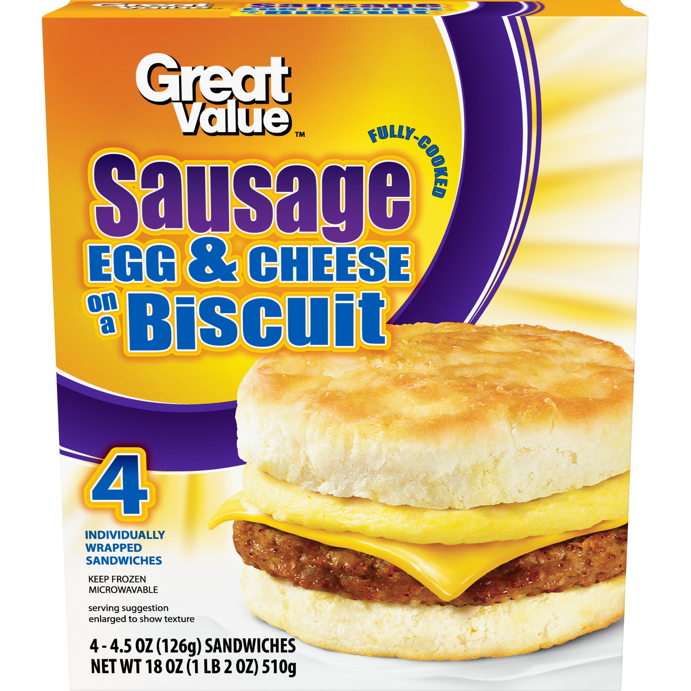 Great Value Biscuit Sandwiches Sausage Egg And Cheese 4 Count Frozen Walmart Com